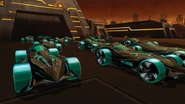 Alpha Sark - Discovered in Get Zemerik, these outcast and obsolete green Zurk were banished to the Torborian Badlands by Zemerik long ago. Remarkably, not only were they able to survive there, they even gained intelligence and built a hive-city of their own. They also established a cult that worships something known only as the "Alpha-Code", which makes them immune to any attempts at conversion by Zemerik and presumably the Red Sentients. They wear cloaks wrapped around their heads like hoods and carry electro-staves. They are also able to speak, and operate individually.