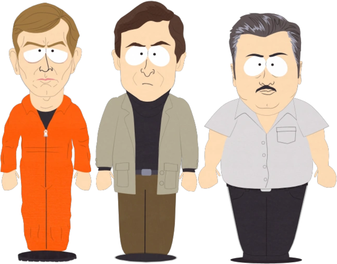 The Three Murderers are fictionalized characters who appeared as the secondary antagonists in the "Hell on the Earth 2006" episode from South Park series. They are based on three real-life infamous serial killers: Ted Bundy, Jeffrey Dahmer and John Wayne Gacy.