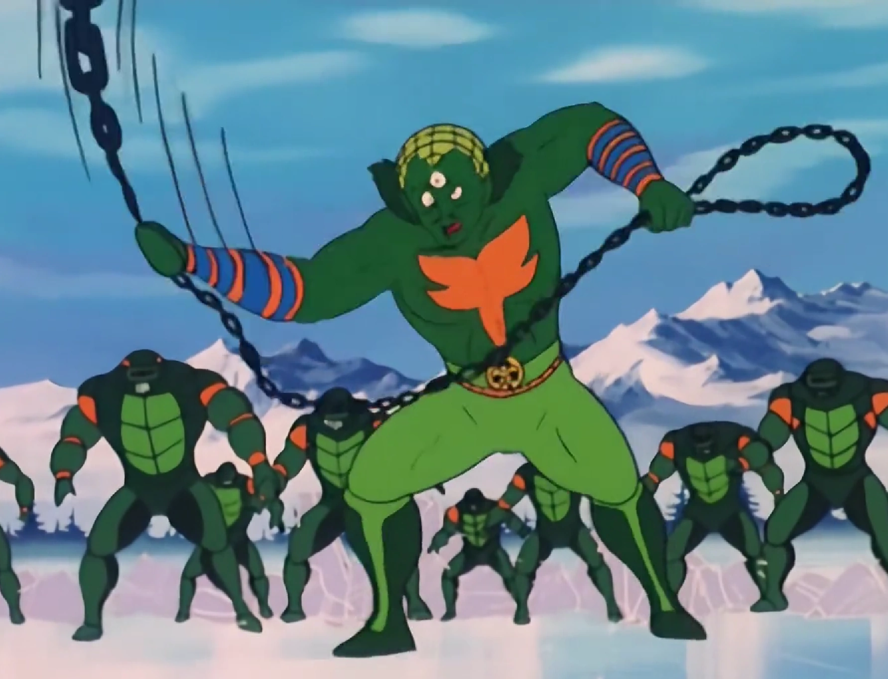 Since Shuten-Doji knew of the Justice Chojin from the 21st century knowing about Kinnikuman being in danger, he tasked the Four Fiends with ambushing them with they arrive with The Umibozun and his men from the Shuten Army waiting in a frozen lake.