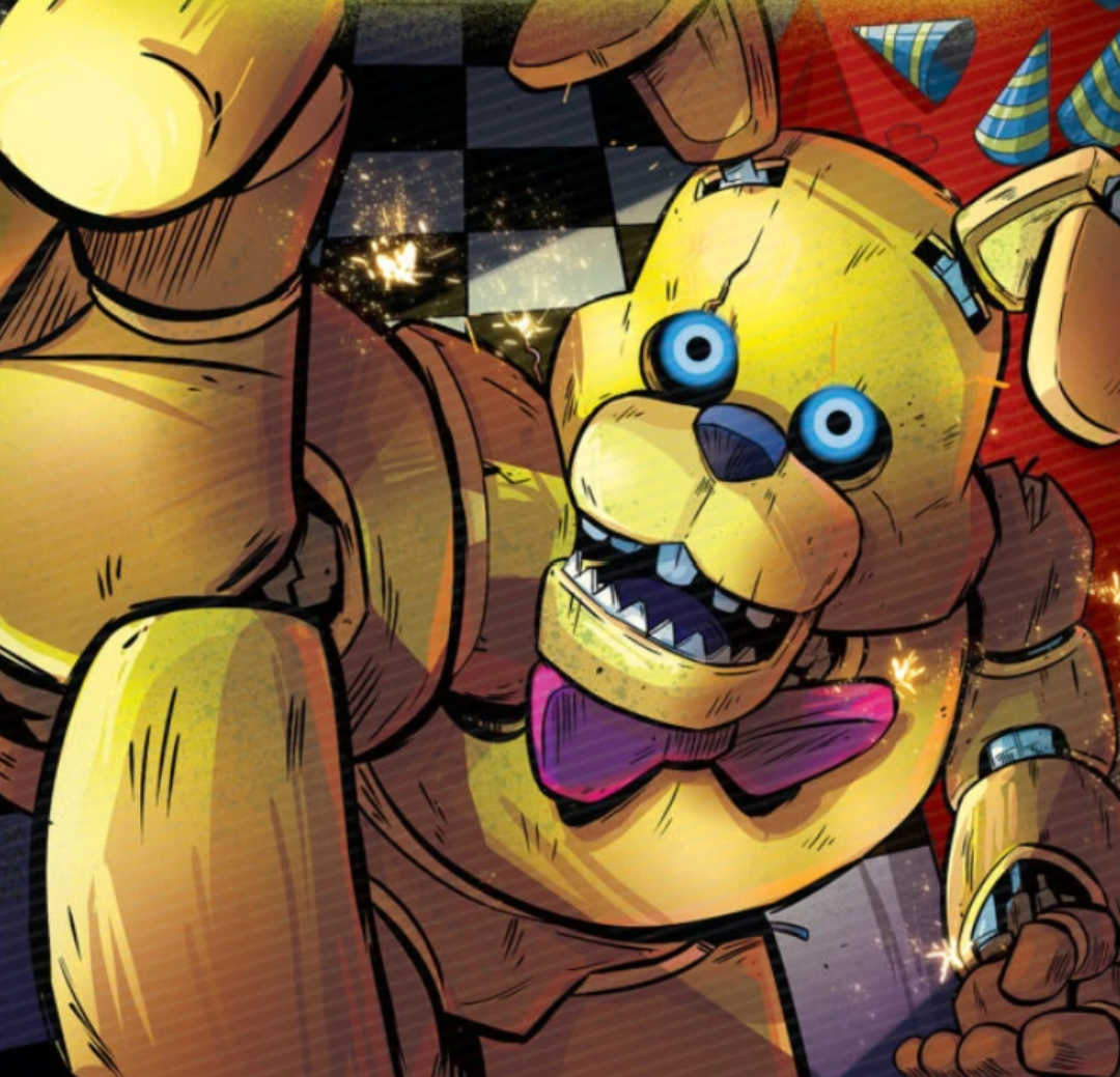 Being a variation of the animatronic from the video game series, the Yellow Rabbit is a bulky, yellow rabbit costume with blue eyes and square-shaped teeth and a purple (red in the graphic novel) bow tie. A big and noticeable difference is that it appears to be made from organic material, rather than plastic or fabric. When it attacks Oswald at the end of the story, the insides of its mouth are noted to be lined with rows of sharp teeth. In the video game adaptation, it has glowing blue eyes and black lines on its suit, noticeably around the eyes and cheeks. The organic material composing it also seems to be a red, fleshy substance.