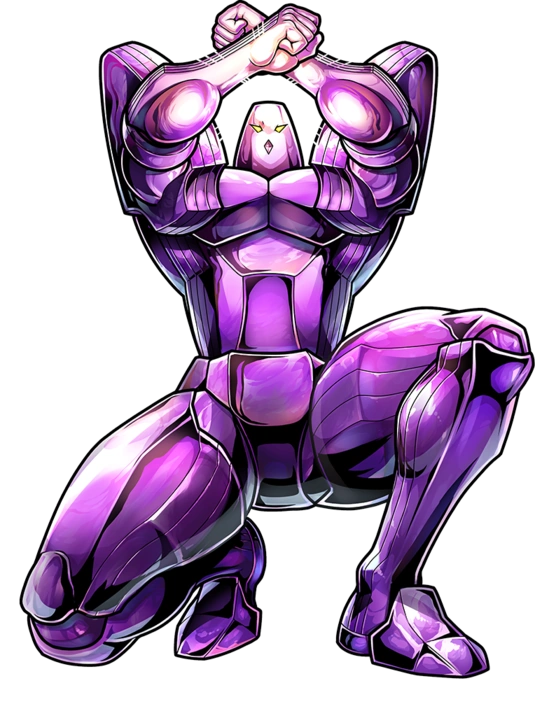 The two Chojin charge at each other, slamming their shoulders against each other and bouncing off of each other because of their equal strength. Sunshine goes in for a kick but Thingman dodges and delivers a lariat but Sunshine's sand body makes Thingman's attack phase through him. To land an attack on him, Thingman produced a loud soundwave but this didn't affect Sunshine who snuck underneath him and threw him into the statue of The Man.