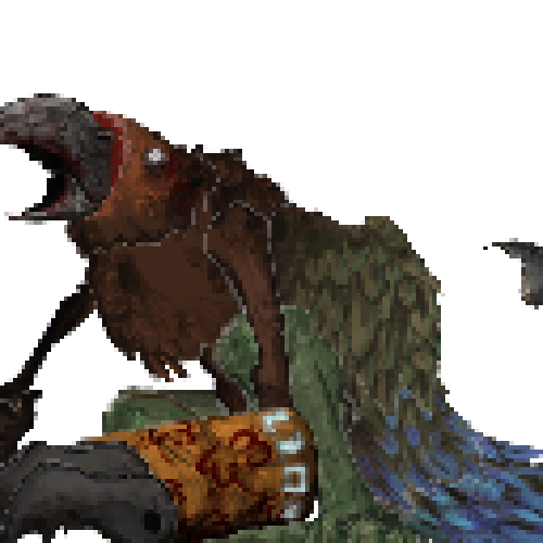 Kinoa was once the beloved hippogriff of Laineia, the mistress of the Dome of Light. She was once a loyal beast who took pride in protecting the pilgrims of the Dome from raiders and bandits. But that all changed when the Untouched Inquisitor invaded. Despite her best efforts, Kinoa was overwhelmed by the Inquisitor's Hornet Steels, losing the pilgrims and Laineia as the first and second "Lambs" of the Inquisitor's expedition to remove everything he condemned sinful. Without the people that she grew to love, Kinoa lost the will to fight back and was condemned by the Inquisitor to become the Third Lamb. Unlike the first two, the Inquisitor saw potential in Kinoa and conducted torturous experiments on her that made her under his control. Now a bound and broken thrall of once her former glory, the Third Lamb serves as a sentry for the Inquisitor in his Dome of the Forgotten.
