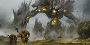 In Guild Wars Prophecies, the undead Vizier Khilbron, corrupted by Abaddon’s whispers, tore open rifts to the Realm of Torment from the Ring of Fire islands, unleashing the Titans onto the mortal world. These entities laid waste to parts of Kryta and threatened all of Tyria until the heroes of the Flameseeker Prophecies defeated the Lich and destroyed the portals. This marked the end of the first great Titan incursion.