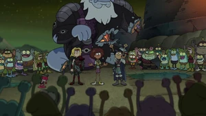 In "Barrel's Warhammer" the whole Toad Army is revealed along with the Toad Lords who rule the North, East, and West towers. Grime and Sasha propose an alliance to overthrow King Andrias which they agree unless they get Barrel's Warhammer. Sasha and Grime manage to get the hammer and the whole Toad Army by their side. Except Braddock and Percy, who leave after Sasha's actions nearly got them killed.