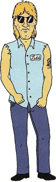 His brief appearance in the 2022 revival showed that Todd has mellowed out and matured somewhat with age, as he now works an honest job with his legal plumbing business. He even hired Leroy, his former rival to work with him. Despite giving the old duo a chance to work for him and attempting to train them, Todd quickly lost his patience when Beavis cut through a support beam on his framing project and they laughed at everything he said. Shifting plans, he gives the two the objective to clean a dirty pipe in the sewers barehanded. When the duo emerge at sunset, covered in feces, to tell him that they finished the "job", Todd fires them without hesitation, calmly revealing he sent them on what was essentially a wild goose chase. After admitting he wasn't going to pay them for the task, he threw them in the back of his van and tossed them around while doing donuts in the Maxi-Mart parking lot before throwing them back out onto the shop's curb. Although he still mistreated the duo, this appearance served as one of his more tame antagonistic moments compared to acts committed in his young adulthood.