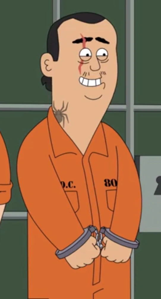 Tuco is a one-time villain from the Netflix original series, Paradise P.D., only appearing in the episode "Dungeons & Dragnet". He is a prisoner in the holding cell of Paradise Police Department, who has most likely been arrested for stabbing, shanking, and cutting multiple people. A deplorable action, which he still continues to do.