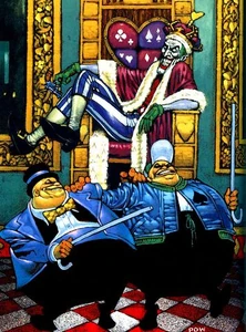They are identical cousins, but they are often passed as identical twins. Much like the Mad Hatter, they are both overly obsessed with the book Alice in Wonderland. They always work together, whatever they do. Although Tweedledum and Tweedledee are most often depicted as being the leaders of their own criminal organization, they sometimes are re-imagined as the henchmen of the Joker.