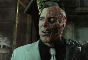Dent becomes more twisted and psychotic every year after his accident, as well as becoming even less sympathetic and redeemable in the eyes of Batman, who used to be his close friend. However, he does show pity on him while taking him to GCPD in Arkham Knight, as Aaron Cash even states that he "felt bad about booking him" in the evidence lock-up. Dent's dependency on his two-sided coin leaves him with scarce loyalties, should it come up bad for someone he would kill them without so much as a second hesitation. However, he is capable of making decisions by himself but normally under pressure or in a forced situation. He is much more reliant on the prospects of fate and destiny rather than calculated decisions, perhaps a reason of him losing the Arkham City gang war, he much prefers to follow the coin blindly even if the decision was a poor one instead of genuine strategy. However, his unpredictability is also considered a gift, as it leaves him hard to place in the eyes of his enemies.