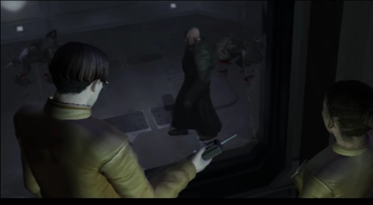 Carter and Linda watching Tyrant R exterminated the Hunter Rs.