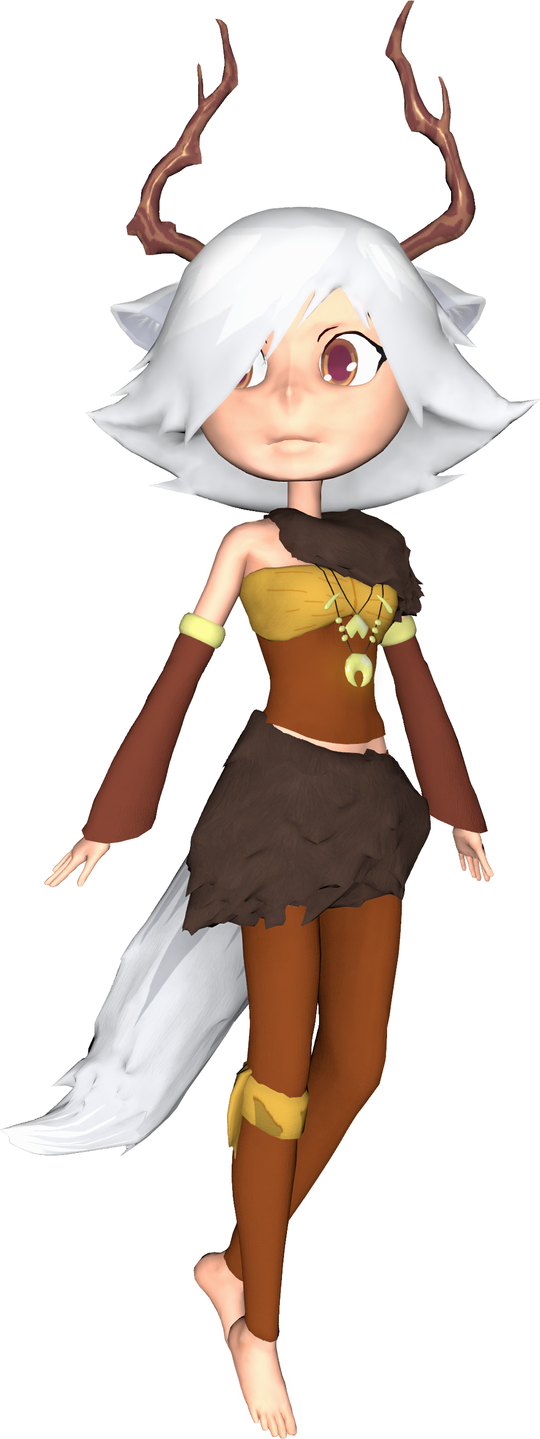 Tirsiak is one of the few human-looking specimens in the whole game (the others being The Host, Specimen 13, Lisa, and, optionally, the protagonist). She appears to have very short white hair and red eyes. She also appears to be having ears and a wolf tail, which are also making her a humanoid. It also appears that she has deer antlers on her head. She is wearing a simple brown top and matching bottoms.