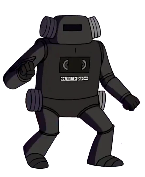 VCR-bitrator was summoned by the Ancient Order of the VHS during battle at night when Mordecai, Rigby, Muscle Man, Hi Five Ghost, Archie the Archivist, and Guardians of Obsolete Formats fighting against with Ancient Order of the VHS. VCR-bitrator arrive Library, then kill and blaster at 8-Track, when he see looking at Archie the Archivist transform into The Laserdisc Guardian. VCR-bitrator was jump and destroyed by The Laserdisc Guardian.