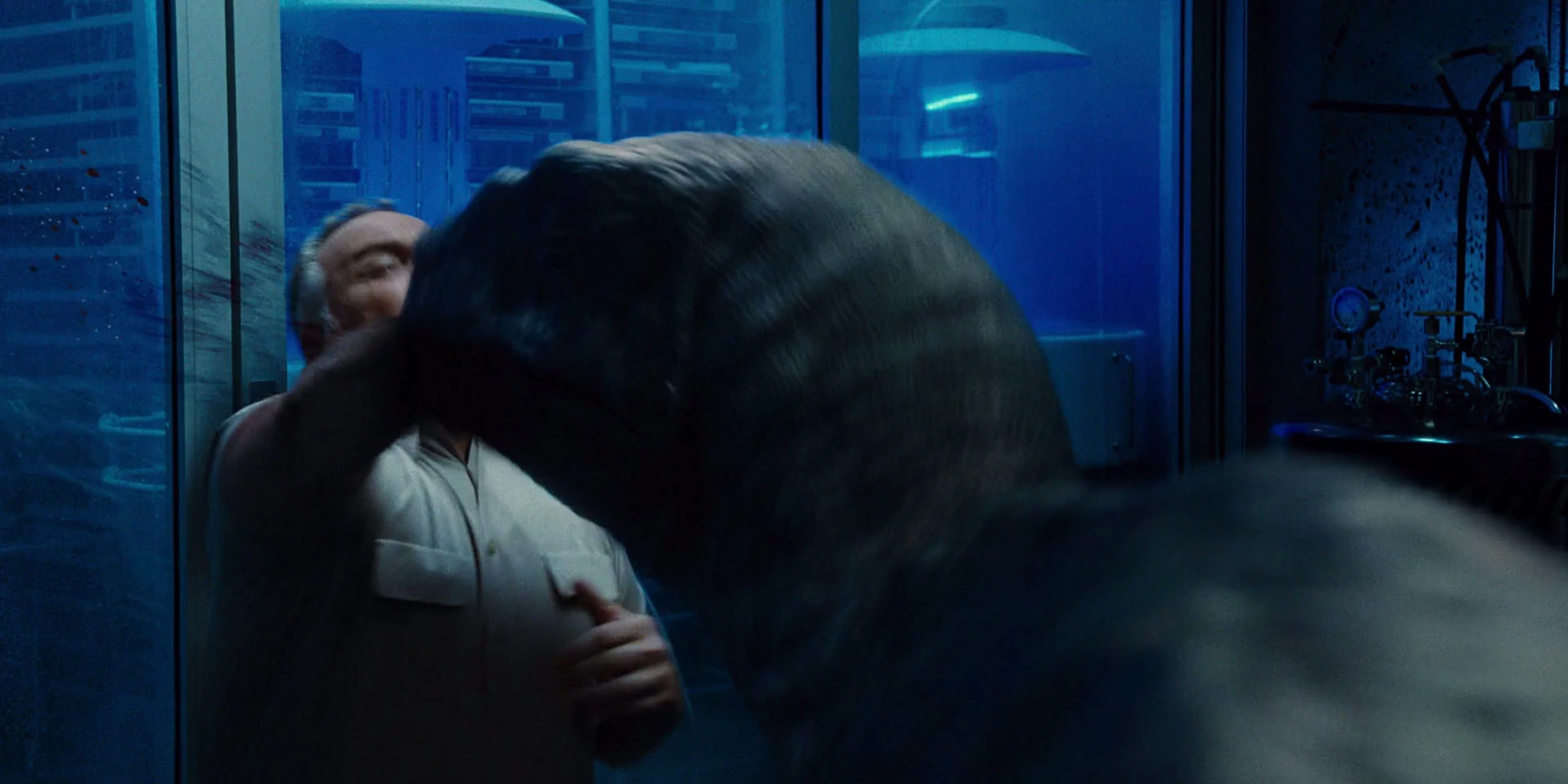 After an employee falls into the raptors' cage and forces Owen to rescue him by using a psychological connection to order the raptors to stand down. Hoskins is impressed so he talked to Owen about his plan to use prehistoric instincts to make the raptors fight wars for him, so he can sell their skills for money. Owen states he fears he can only interact with raptors, not control them, and kindly dismisses Hoskins' request.