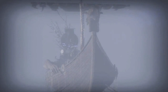 Vikke aboard his Viking ship