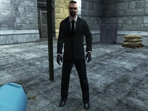 - Another notable member is referred to as "Agent 74", a clear reference to Agent 47 from the Hitman games. Agent 74, like 47, is bald and wears a fancy suit.