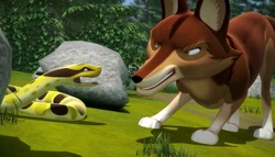 A Terrible Roar: Widco and Kalliska appear as cameos, with the renegade wolf taking on the role of the main antagonist of this episode. The two coyotes spot Moose returning to his herd before leaving the area.
