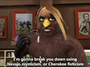 Through dialogue, Xavier implies he has a deeper off-screen history, such as claiming he had been taught how to fight with his feet for 22 years, and knowing magical Native American dances. Whether he was taught these skills by Chief Master Guru, somebody else, or these claims are lies conjured by his twisted psyche’s tragic dividend, are unknown.