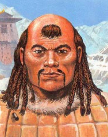 The Khahan is tall and stocky, distinctively Tuigan in appearance. His skin is lined and weather beaten, making him look older than the 40 winters he actually is. Yamun's legs are bowed from years of horse riding. His hair is red-brown and worn in the traditional Tuigan style. Two prominent scars mark his face, one across the bridge of his nose and the other on his upper lip.