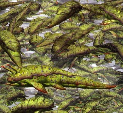 While not possessing someone, the Yeerks' normal form are greatly resembles large slugs with four fin-like limbs and greenish-gray skin. They lack eyes, though they possess optical and sensory tentacles on their head. However, once they enter a host's ear and brain, their body shifts into near-liquid form so they could pass through orifices within ear canal and possesses the host's brain, effectively controlling their body and mind.